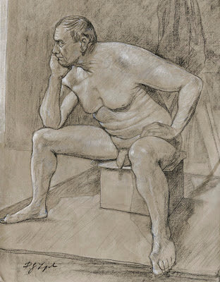 On closer inspection I realized that the model is Des and that the guy in the white t-shirt is me drawing him.